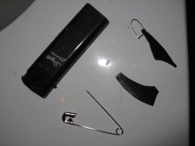 Monday, August 11th, I did indeed do a quick craft. there were two pieces of broken records that i picked up off the floor from the Mr. Brainwash art show. i had picked them up with the intention of making earring with them, then promptly forgot they were in my dress' pocket. making earrings is easy! just heat up a safety pin with a lighter, and jam it through something: